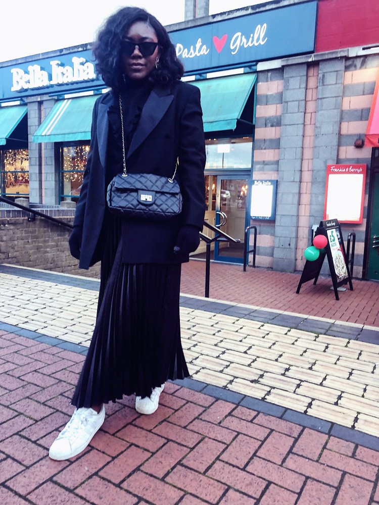 LOOK THREE – Skirt @primark (new season AW19), Tux Blazer – Next old, Jumper – Newlook old , Trainers @adidasoriginals