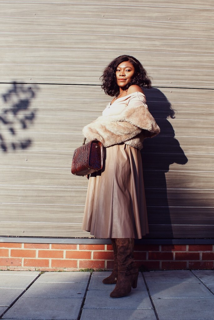 One easy and quick way to really spice up your look and look expensive on a budget is to stick to neutral shades such as black , white, nudes, wearing one colour head to toe also almost always never fails, there is a method to it though, whenever you wear one colour head to toe, make sure to play around with your textures, as you can see here, I have juxtaposed, faux leather with faux fur, croc effect bag and suede leather boots.